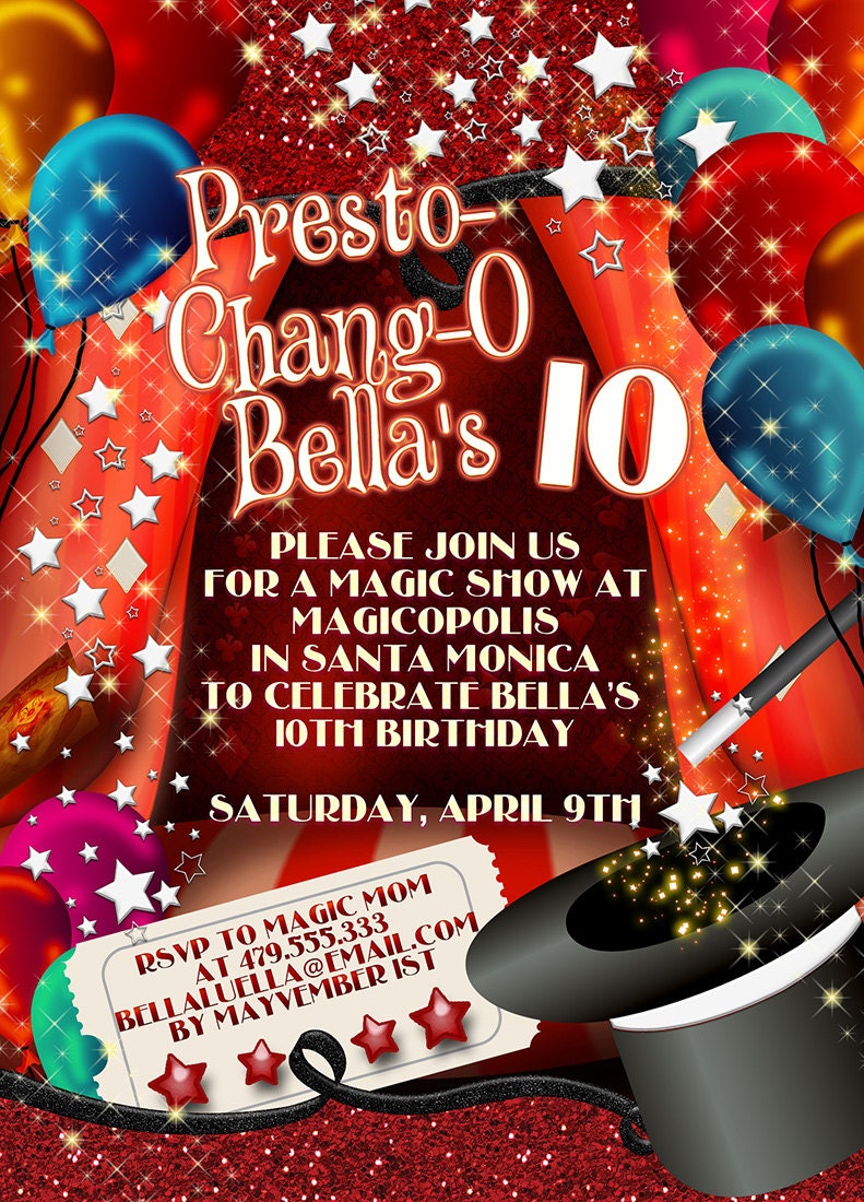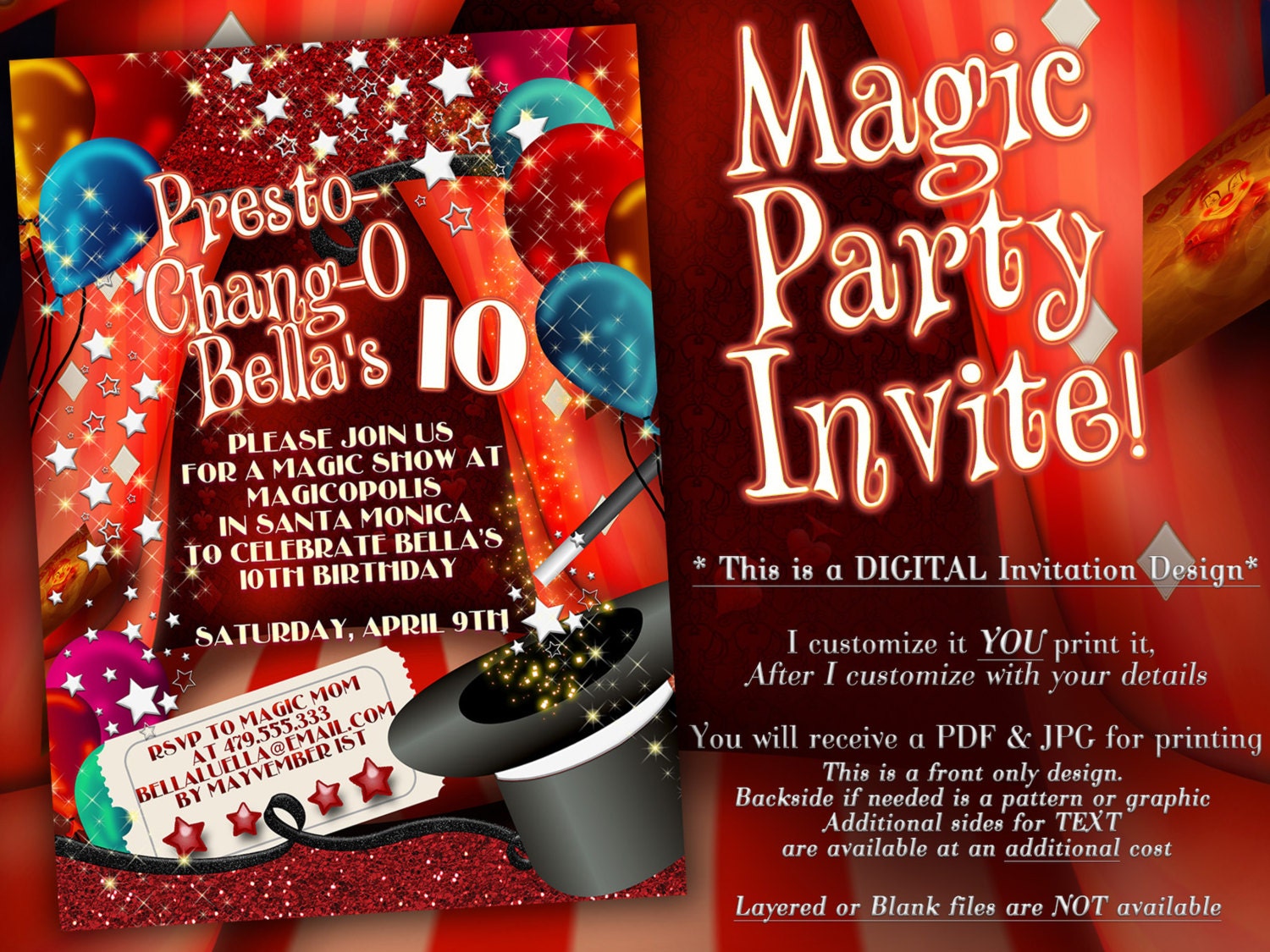 Magic Birthday Party Invitations Magic Party Invitation Etsy