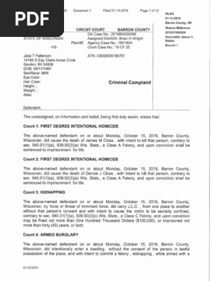Jayme Closs Case Kidnapping And Murder Charges Pdf